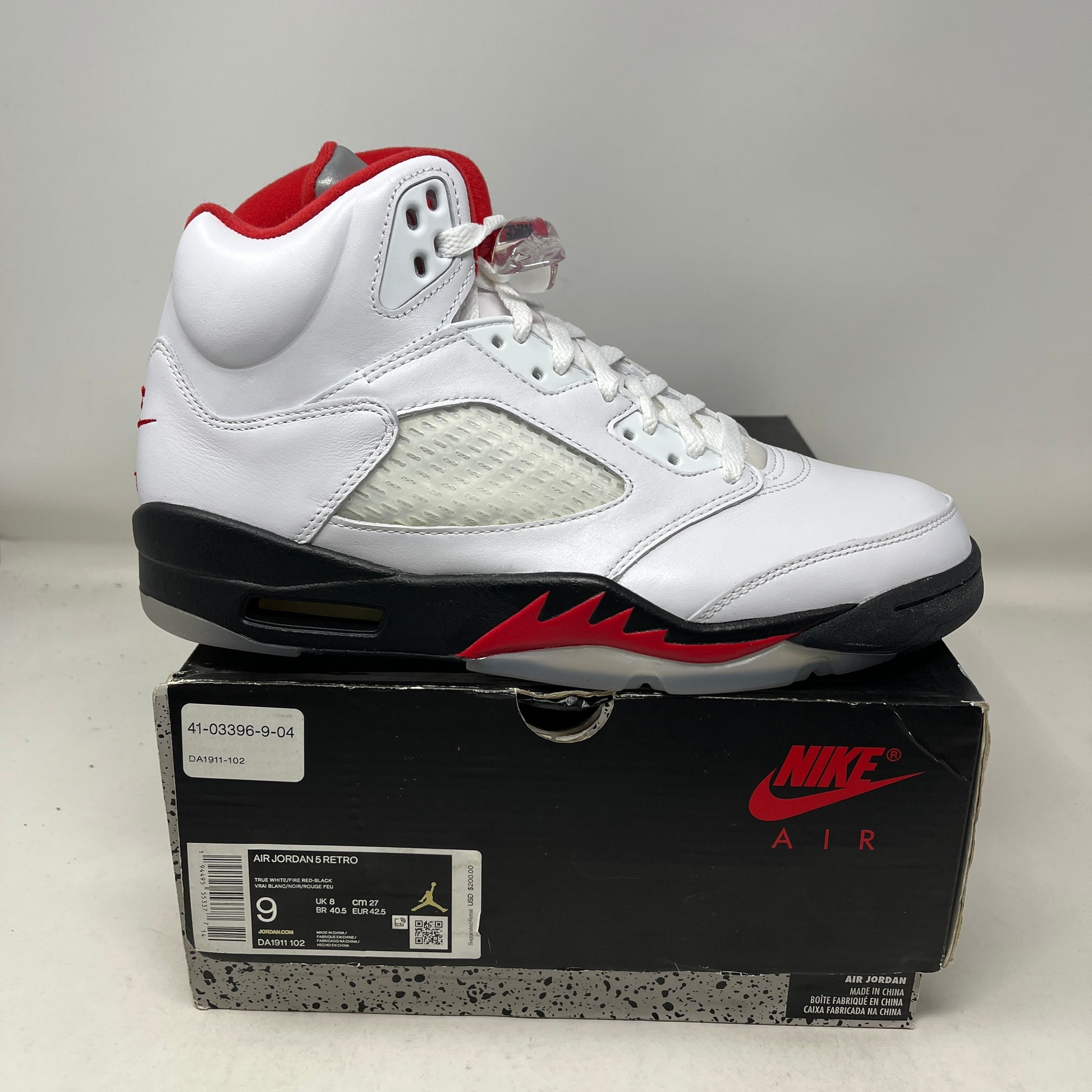 This pair is brand new and includes the original box. A true OG-inspired classic, the 2020 “Fire Red” Jordan 5 brings back the iconic white leather upper, reflective silver tongue, and bold Fire Red accents — celebrating the legacy of one of MJ’s most memorable silhouettes from the early ‘90s.